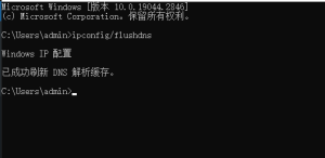 2. 接着,在“cmd”窗口中,输入DNS缓存清理命令“ipconfig/flushdns”并按下回车键